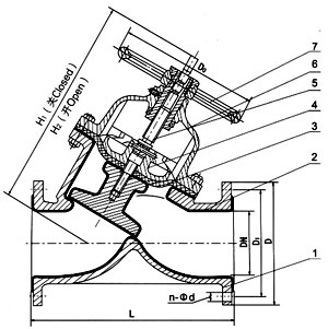 部件列表: 1、閥體 2、閥體襯里 3、隔膜 4、閥瓣 5、閥桿 6、閥蓋 7、手輪