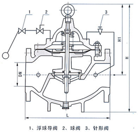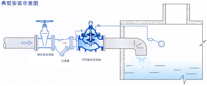 100X遙控浮球閥是兼具多種功能的水力操作式閥門(mén)。主要安裝于水池或高架水塔的進(jìn)水口處,當(dāng)水位達(dá)到設(shè)定的高度時(shí),主閥由浮球?qū)чy控制關(guān)閉進(jìn)水口停止供水:當(dāng)水位下降后,主閥由浮球開(kāi)關(guān)控制打開(kāi)進(jìn)水口向水池汪水,實(shí)現(xiàn)自動(dòng)補(bǔ)水。液位控制精確,不受水壓干擾100x隔膜式遙控浮球閥可隨水池的高度及使用空間任意位置安裝,維護(hù)、調(diào)試、檢查方便、密封可靠,使用壽命長(zhǎng)。隔膜式閥門(mén)性能可靠、強(qiáng)度高、動(dòng)作靈活適用于4 50mm口徑以下的管道。DN 500mm口徑以上的建議使用活塞式。