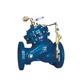 106X電磁遙控浮球閥產(chǎn)品概述 106X電磁遙控浮球閥是在100X遙控浮球閥的基礎(chǔ)上安裝了常開(常閉)型電磁閥電控裝置,使該閥具有雙保險(xiǎn)作用,即使停電或電浮球失靈,也能控制水位,絕不會(huì)讓水位超過規(guī)定的位置,電動(dòng)浮球閥可以設(shè)置啟閉水位,解決主閥頻繁啟閉。該電磁遙控浮球閥廣泛用于高層建筑、城市生活用水、消防、工礦企業(yè)的水池,水塔的進(jìn)水管道中。 106X電磁遙控浮球閥主要外形連接尺寸 單位:mm