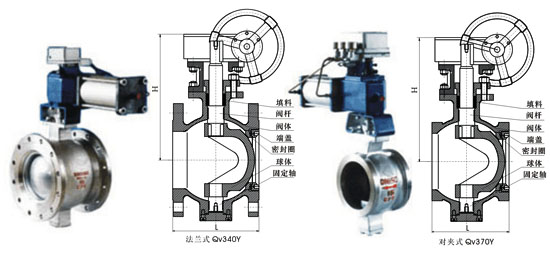 結(jié)構(gòu)特點(diǎn) 1、V型球閥采用蝶形彈簧或圓柱彈簧加載的可動(dòng)閥座結(jié)構(gòu),閥座與V型球芯不產(chǎn)生卡阻或脫離等問(wèn)題,密封可靠,使用命長(zhǎng); 2、V型切口球芯與閥座間有剪切作用,特別適用于含纖維、微小固體顆粒、料漿等介質(zhì); 3、球體與閥座密封根據(jù)工況不同,可分別采用軟密封、噴焊鎳基合金(硬度大于HRC60)、超音速噴涂鎢鈷合金(硬度大于HRC70)及特種硬化材料等多種先進(jìn)工藝,適用各種苛刻工況,軟密封適用200℃以下工況,硬密封碳鋼不超過(guò)425℃,不銹鋼不超過(guò)600℃。 4、蝸輪傳動(dòng)具有精確調(diào)節(jié)和可靠定位功能,流量特性近似等百分比,可調(diào)范圍大,調(diào)節(jié)精度高; 5、全開(kāi)時(shí)流通能力大,壓力損失小,介質(zhì)不會(huì)沉積在閥體中腔。
