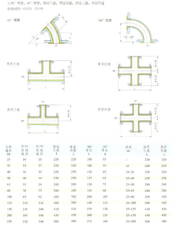 三、STG型三通管用途: 襯氟管道管件系列產(chǎn)品質(zhì)量可靠、技術(shù)先進(jìn),被廣泛應(yīng)用于化工、電力、冶煉、制藥、食品、環(huán)保、電鍍等領(lǐng)域,可通過各種濃度的酸、堿、鹽等,是目前耐腐蝕性能最好的防腐管。