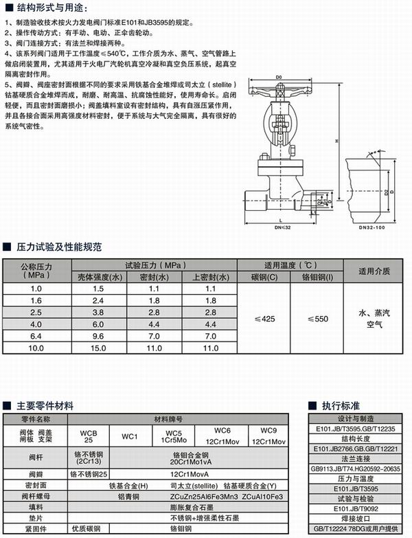 NKJ41H焊接式真空隔離截止閥采用主體鑄鍛結(jié)構(gòu),具有平行雙密封副半強(qiáng)制雙向密封,密封面到位運動和楔形塊楔緊運動分步作用實現(xiàn)零泄漏。真空隔離截止閥適用于公稱壓力PN4.0~10.0Mpa,工作溫度≤200℃的火力電站回水冷凝系統(tǒng)管道上,切斷或接通中的介質(zhì)。適用介質(zhì)為:水、蒸汽等。密封面運動磨擦力小、啟閉輕便,而且密封面磨損有自動補(bǔ)償功能。結(jié)構(gòu)簡單、緊湊、檢修方便,使用壽命長。閥蓋填料室設(shè)有真空密封結(jié)構(gòu),具有自脹壓緊作用,并且密封采用高強(qiáng)膨脹材料密封,使系統(tǒng)與大氣完全隔離,具有很好的系統(tǒng)氣密性。真空隔離截止閥連接形式分法蘭、焊接兩種,驅(qū)動方式有手動、電動兩種。真空隔離截止閥適用于工作溫度≤425℃和≤550℃,工作介質(zhì)為水、蒸汽或空氣的管路上,作為啟閉裝置;真空隔離截止閥尤其適用于火電廠汽機(jī)冷凝和真空負(fù)壓系統(tǒng),起真空隔離密封作用。